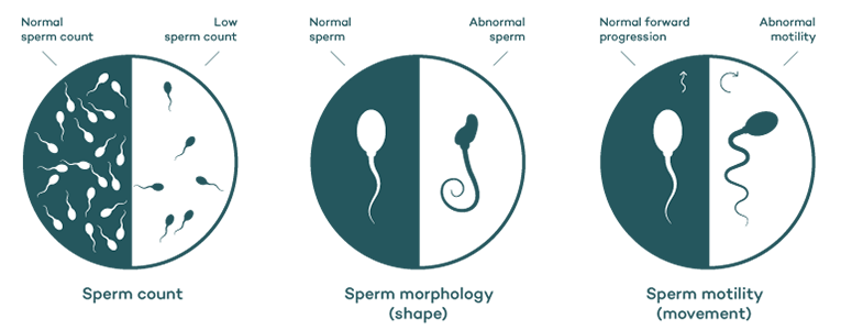 • Morphology: The shape of your sperm can be affected by your genes, and oddly shaped sperm might not work as well​
