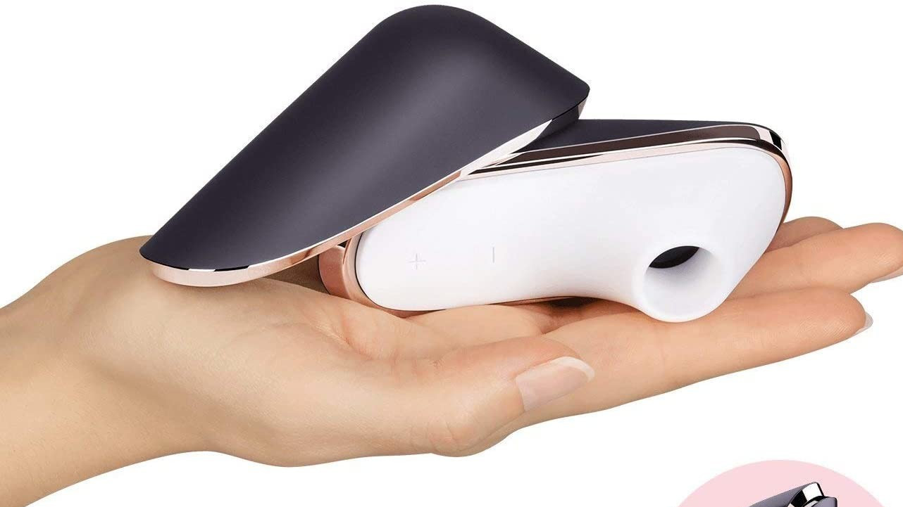 The Satisfyer Pro Traveler uses the same air pulse tech as its full-sized cousins, but in a sleek, clamshell case that snaps closed magnetically. It’s shaped like a high-end compact mirror and fits easily in your palm.