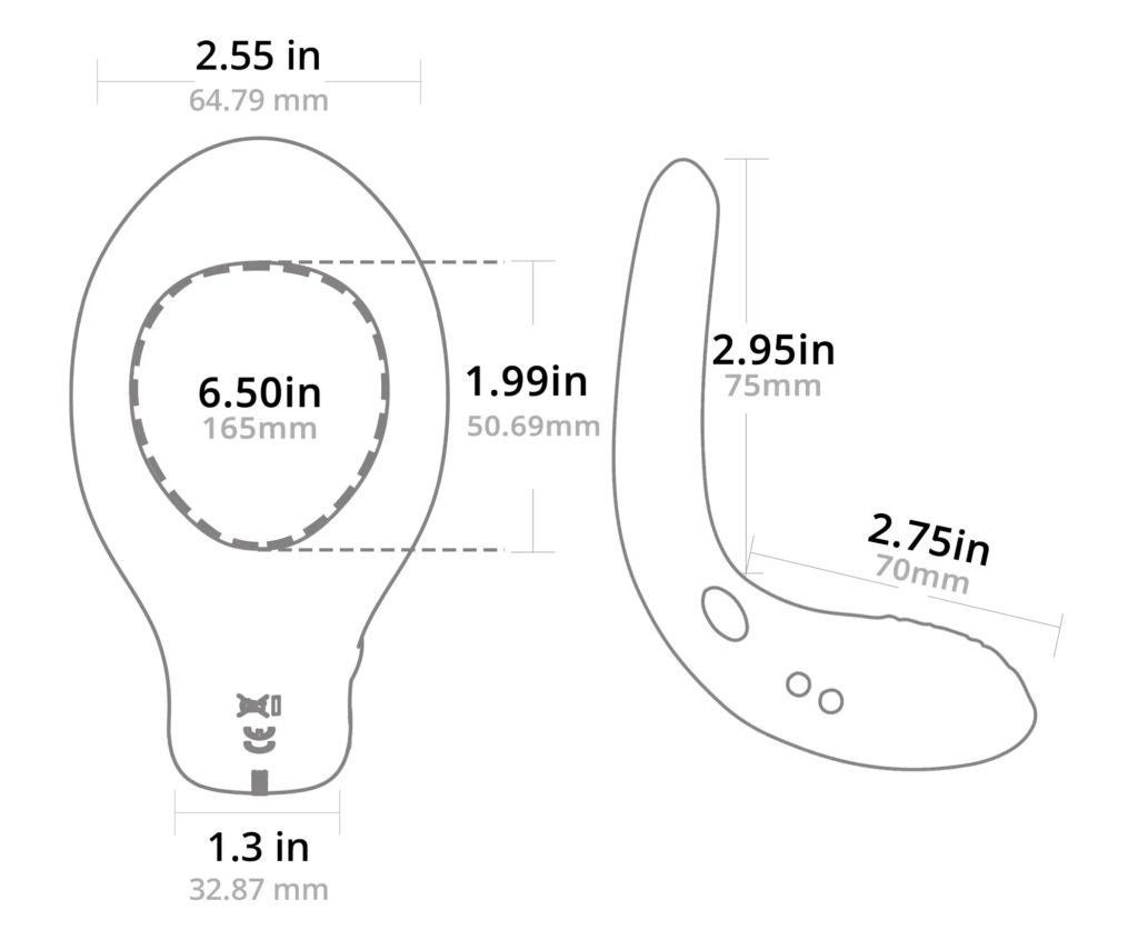 Lovense Diamo is made from body-safe silicone and a dash of ABS plastic. The ring has a bit of a stretch, so it will fit more users than a solid version (like metal). Diamo’s curve is meant to fit snugly around the body and target the perineum, while also creating a clever, but still ergonomic, way to wear in it multiple directions.