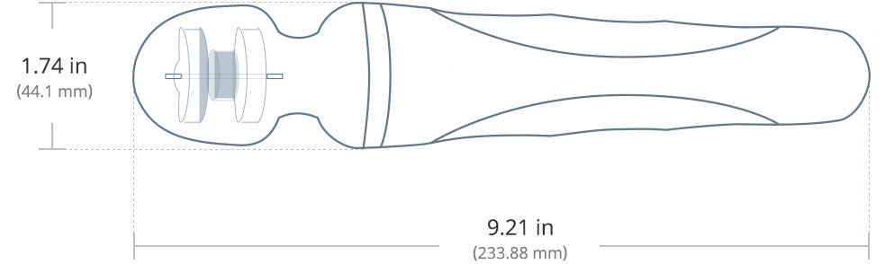 The size is comparable to other mini wands, but without sacrificing the bits inside that make it rumble. It’s small enough to travel with or store in your bedside table. The dimensions are comparable to the PlusOne vibrator, a small-size Doxy Die Cast, Lelo Smart Wand (medium 2), or a “head” shorter than the Hitachi rechargeable.