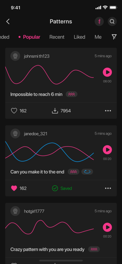 - Replay: Relive your favorite moments of pleasure by replaying saved patterns or sessions whenever you desire.