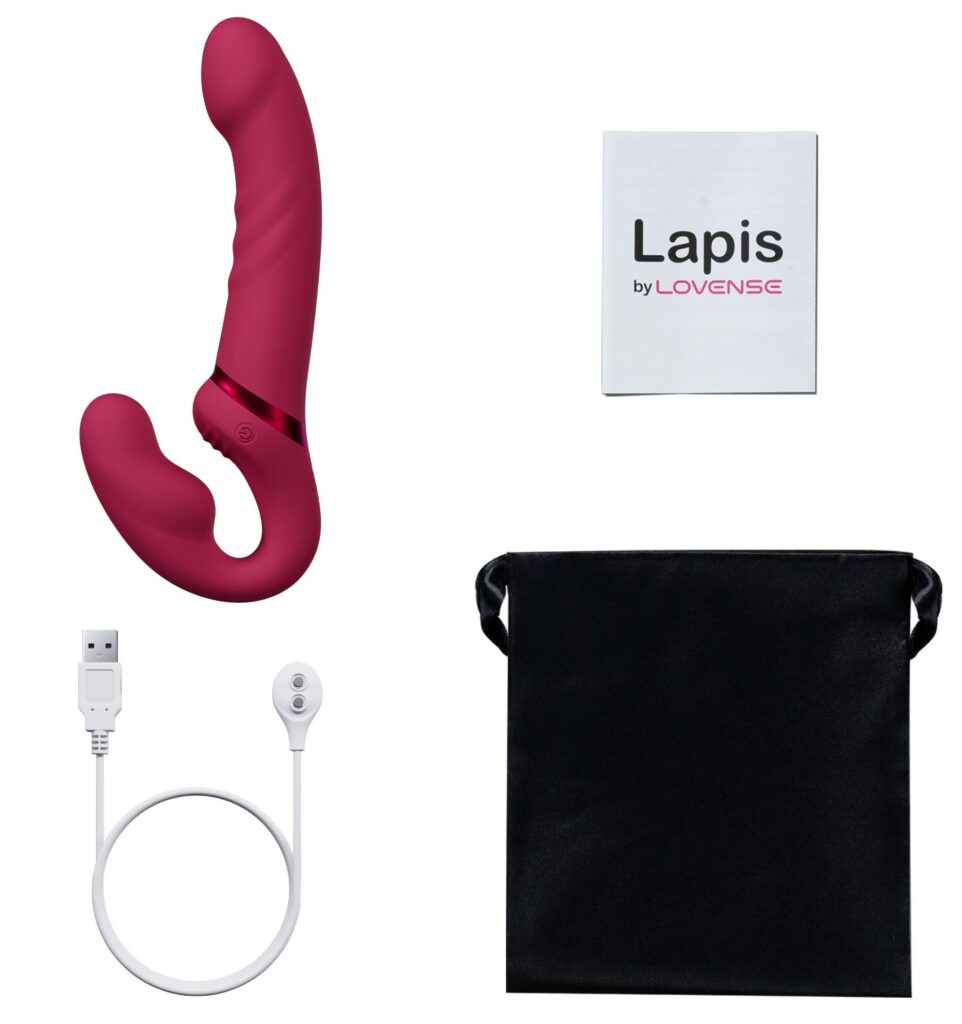 Lapis is a strapless strap-on with three vibration points – in the head, the ribbed clit point, and in the insertable bulb. It’s special because the “neck” is flexible. So you can make the area wider or more narrow for either comfort or a secure fit.