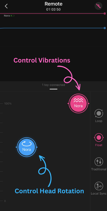 • Toy Linking: This is different from syncing and only availible for Nora. You can pair it with Max 2, Calor, Lovense Sex Machine, or another Nora. Whatever the “controlling” toy does, the other reacts. So the more the person thrusts the stronger the other will react.