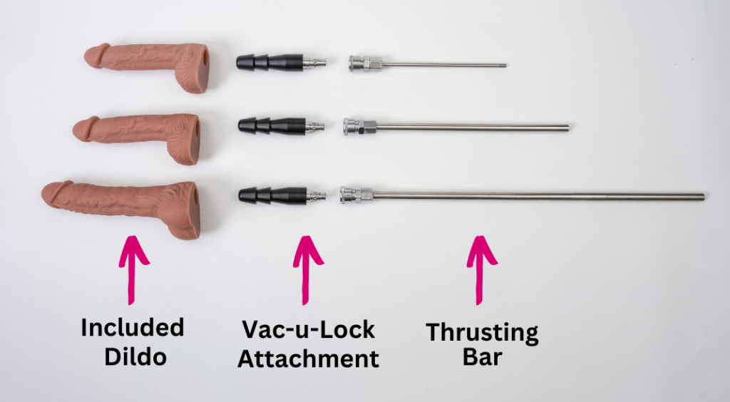 • 2x Dildos – one regular and one larger with vac-u-lock attachments