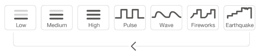 - Quick press to cycle through the vibration and pattern levels.