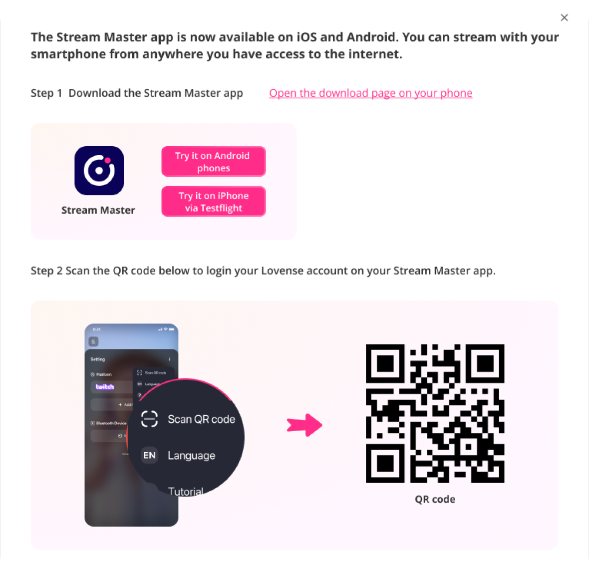 Scan the QR code on Cam Extension to login your Lovense account on your Stream Master app.
