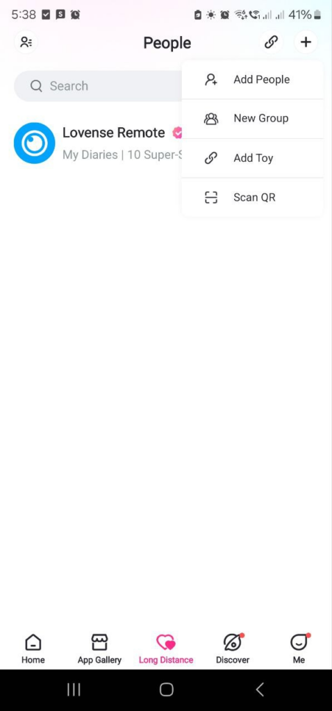 - Open the Lovense Remote app and go to the Long Distance tab.