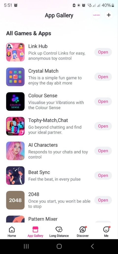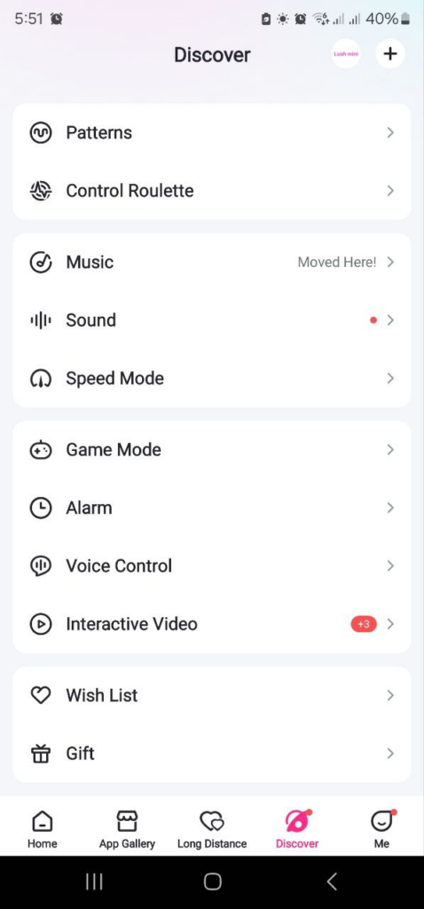 The Lovense Remote app isn’t just for on/off and long-distance play. Tucked inside the menu are a bunch of creative extras that make toys more fun, interactive, and personal. Here are some highlights you’ll find under the Discover and App Gallery tabs: