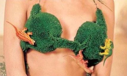 Nooooo, fake grass is itchy and uncomfortable. Who thought putting it next to your ta-tas was going to be better? Even though it’s just a regular form covered in green, I will give props to the plastic dinosaurs. It made me LOL and therefore made the list without too much heat.