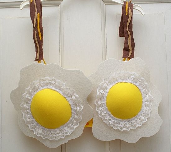 I think this was a yellow bra with white pieces attached on. The lace makes me giggle. The straps make me hungry (although they also look like they could fall off at any second. A slightly deeper dive tells me that that could have been made from breast cancer awareness, which is cool.