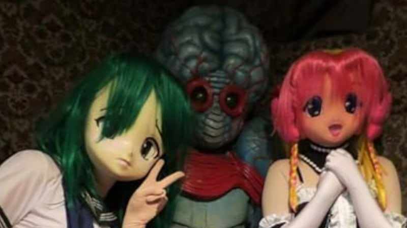 Old Japanese men dressed in slapdash of women’s attire, furry animal costumes, slutty uniforms, things that looked like fast food mascots who stand on the sidewalk, people covered head to toe in latex or rubber, cosplay, ball gowns, spandex, unidentifiable interpretive costumes, and a truckload of thongs or spank pants.
