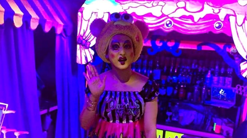 Checkered floors, pink brick walls, cupboards, drawers, and coolers behind the bar had been painted like monsters dripping with Nickelodeon goo. The bathroom was the most unnerving confined space I had ever been in. And the dance area with a raised DJ booth that seemed like that ran out of colored paint and only had black left.