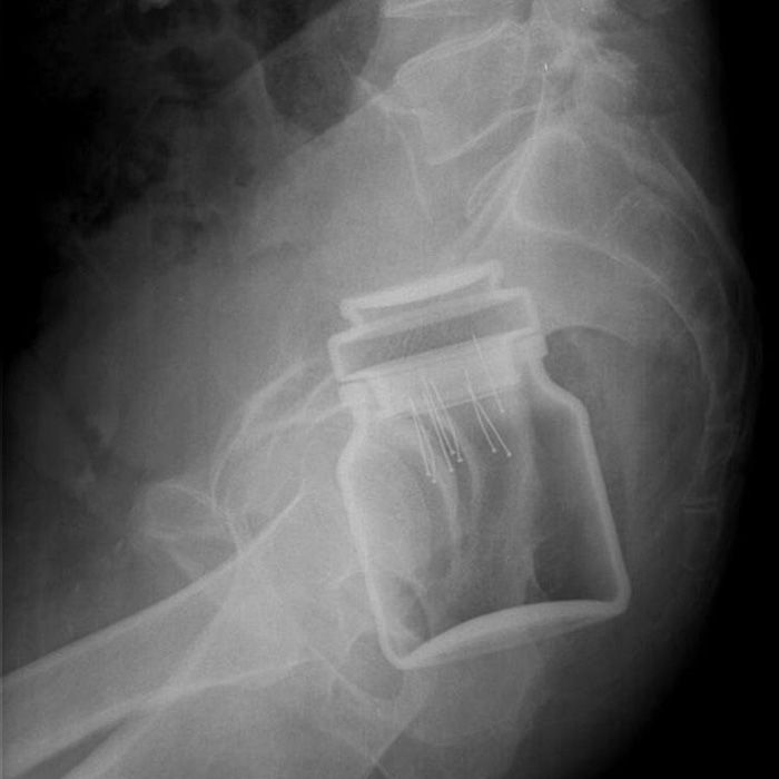 Well, the anal cavity isnt’ like a vaginal – there’s no “back wall” to stop an object. This is why anal toys should always have wide, flared bases or something that will stop slippage (because you will also be using a lot of lube). However, it seems not everyone got the message and went ahead with whatever they found around the house.