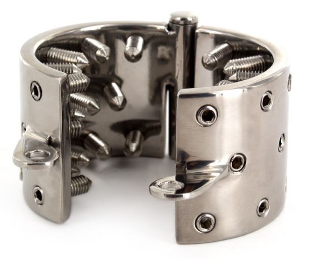 Want to be really sadistic? Well, here’s your dream come true. Each screw is adjustable so you can inflict as much or as little (consensual) pain/discomfort as you want. The loop at the side is so you can add a lock and keep them in there for the maximum (safe) duration. It also won an XBIZ award.