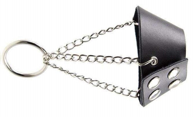Before you freak out at the picture, no, the balls are not squished in that tiny slit – there’s a larger hole in the middle to allow for more room. This is 100% for BDSM play and will deliver total domination over your man. Because it doesn’t just stretch his boys, it restricts his movement big time (especially if you get the ones that also attach at the ankles!