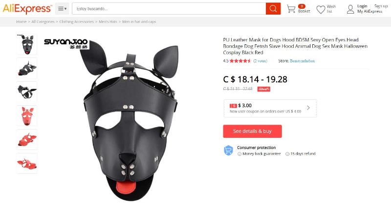 Here is one of the results when searching for “BDSM Dog Masks” on Google.