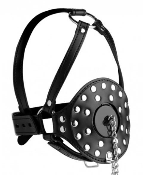 I love the design – the head harness with two adjustable straps, the studded mouth cover, and the sink plug. Everything looks great. I just wish they showed a picture from the inside – not only to see if it will be comfortable but how easy it will be to clean (the fake leather mouth cover seems to be separated from the back section).