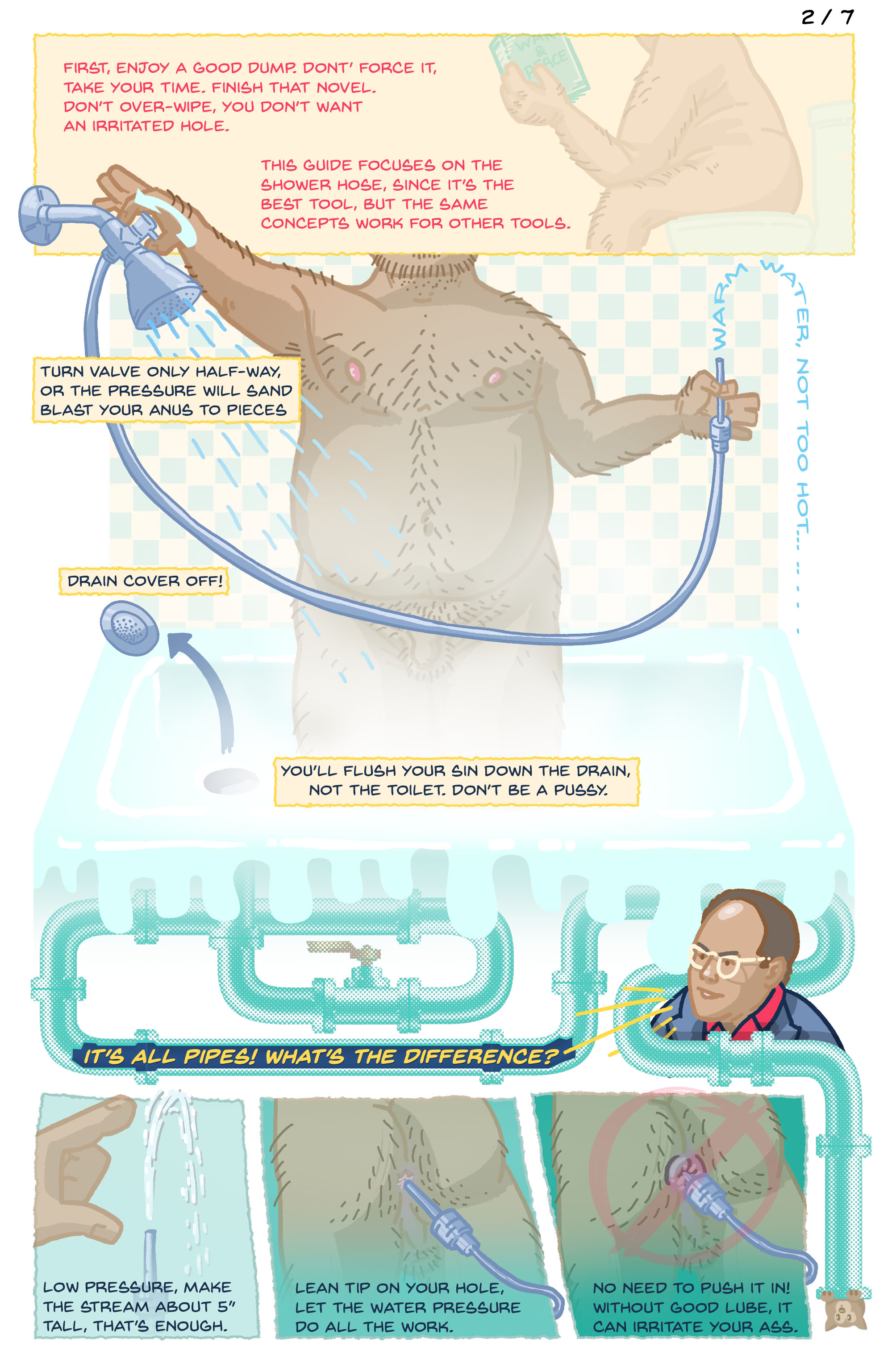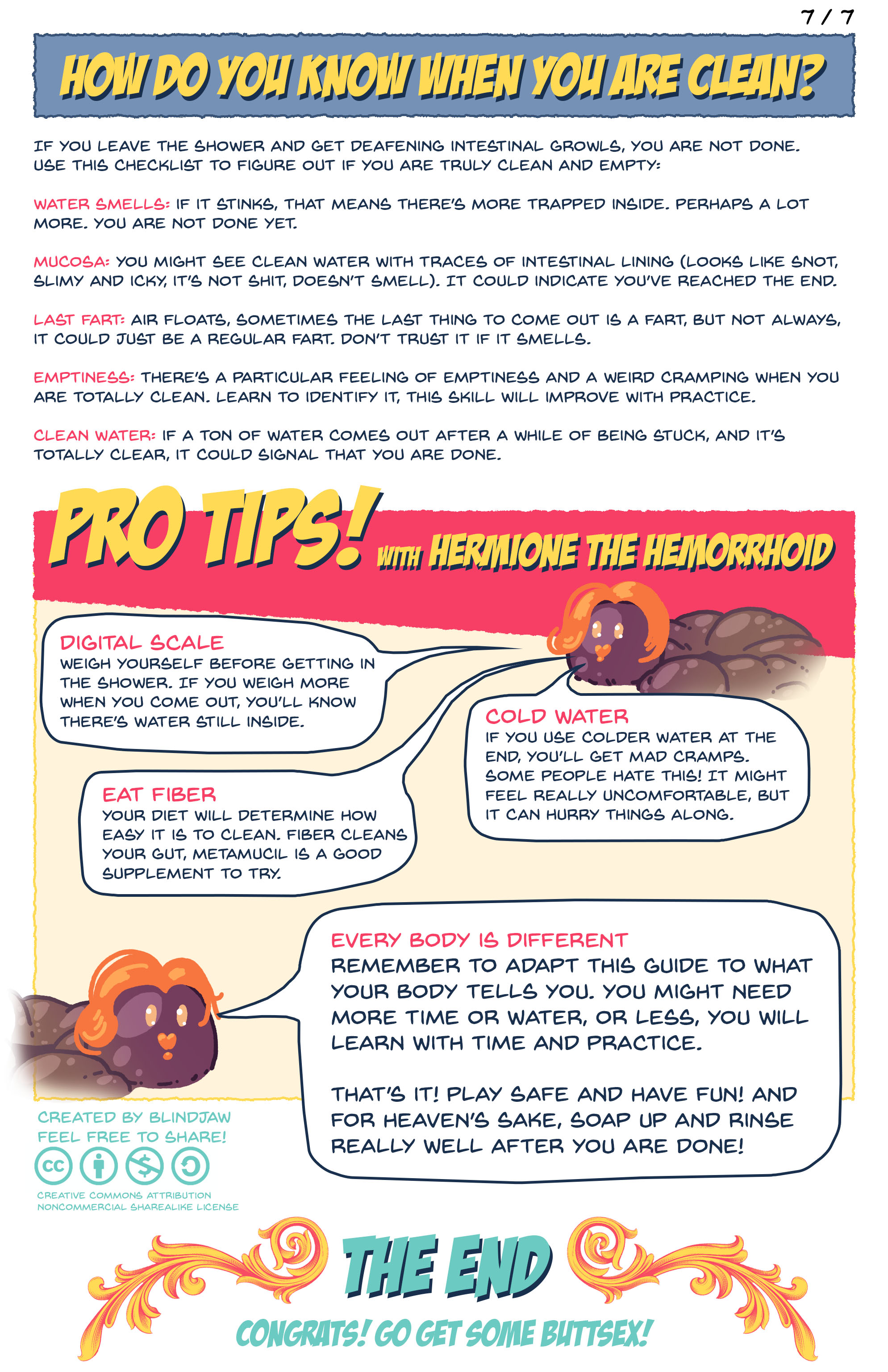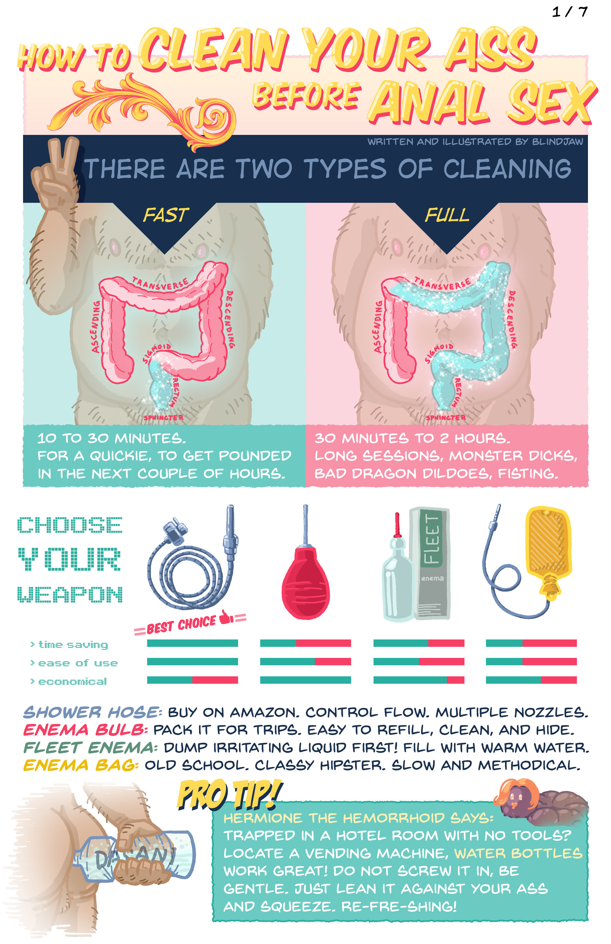 I WAS going to write an article about how to get your bum ready for anal sex, but “BlindJaw” (twitter.com/blindjaw) beat me to it! These images are so light-hearted yet informative, I wanted to help his work reach more people. So, without further adieu… anal douching infographics!