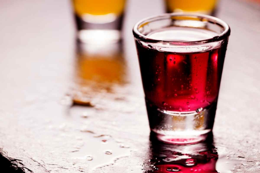 Make sure to add some ice into the mix and serve in a shot glass.